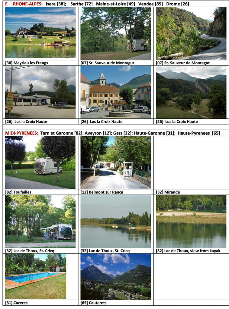 | Campsites arranged by REGIONS and Departments For pictures of the sites click on the site name (in supplement at end for 2013; not yet available for 2014) |