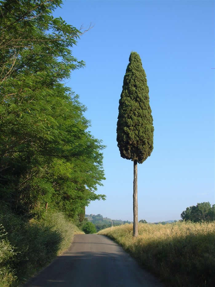 | The middle farm is Poggiacolle | We know we are nearly home when we see this tree | |