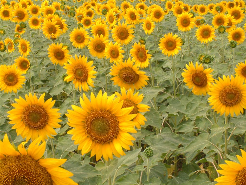 | Part of huge fields of sunflowers near Imran's home | |