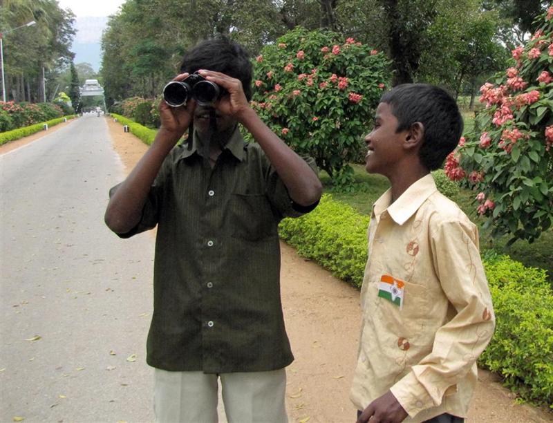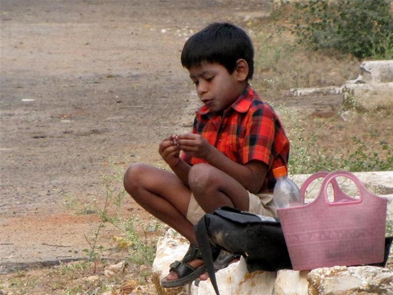 | Lokesh's brother and friend waiting for school bus. |