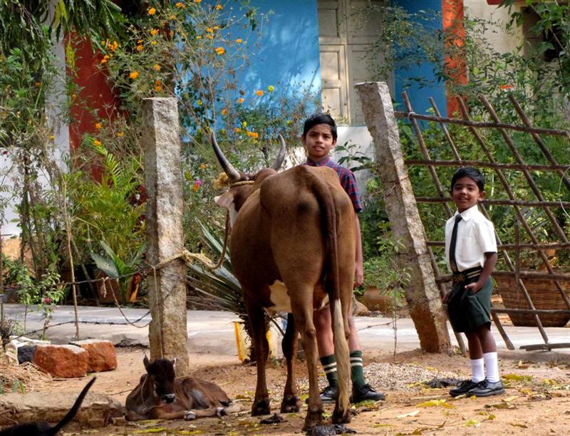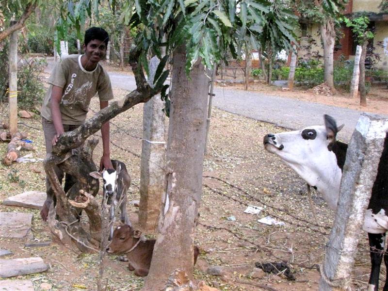 | Lokesh, Meenakshi the cow and her calf |