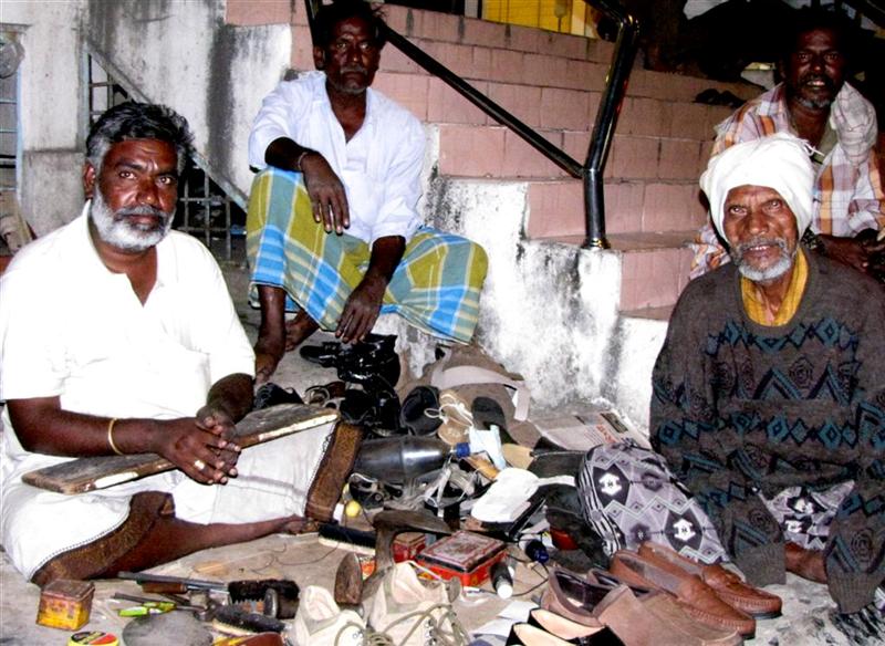 | Shoe repairer on steps of the posh shoe shop at corner fo Nethaji road | |