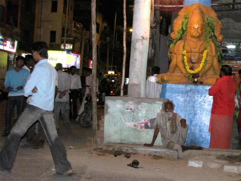 | The Hanuman temple [on the right] where Nethaji road meets Gandhi Road and Prakasm Rd. | |