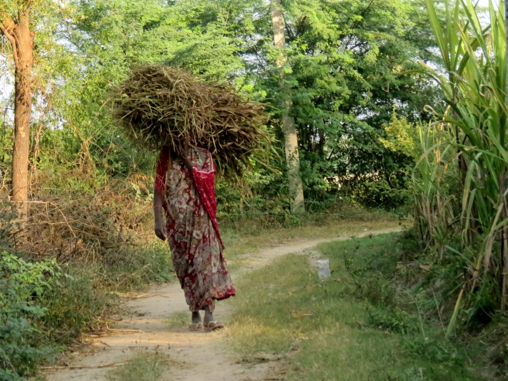 | Lokesh's grandfather burning the rubbish pile outside the house | |||