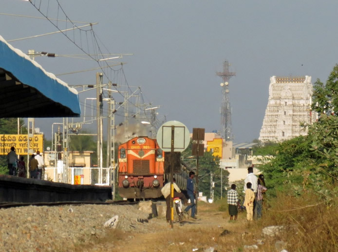 | Walk along the rail track behind the guest house into Tirupati TOP |