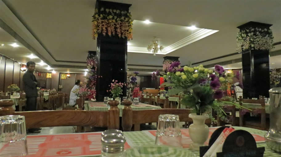 | Inside the quiet cool pleasant restaurant of Sindhuri Park hotel | |