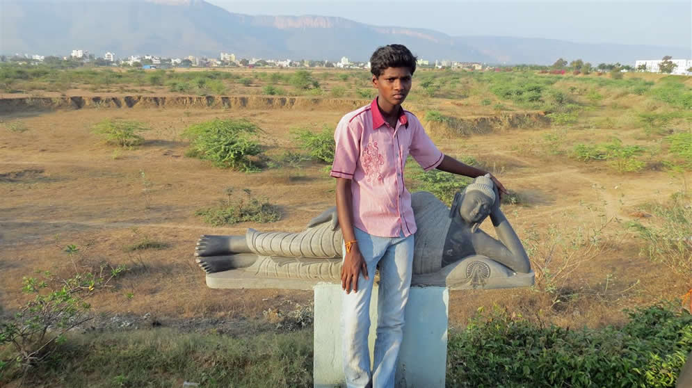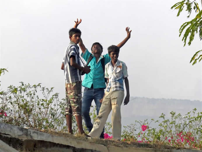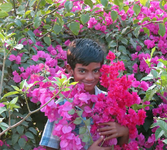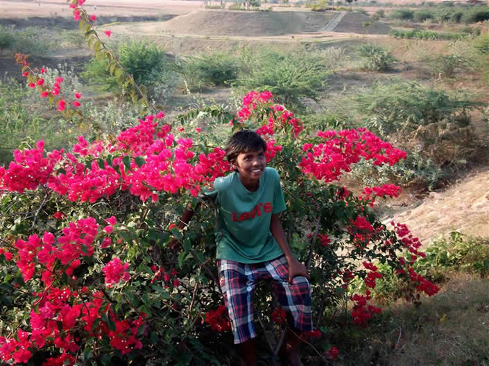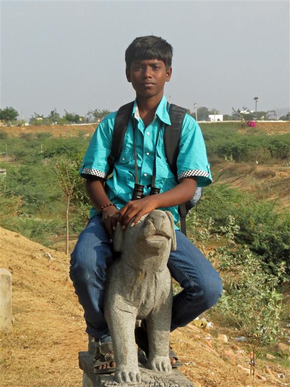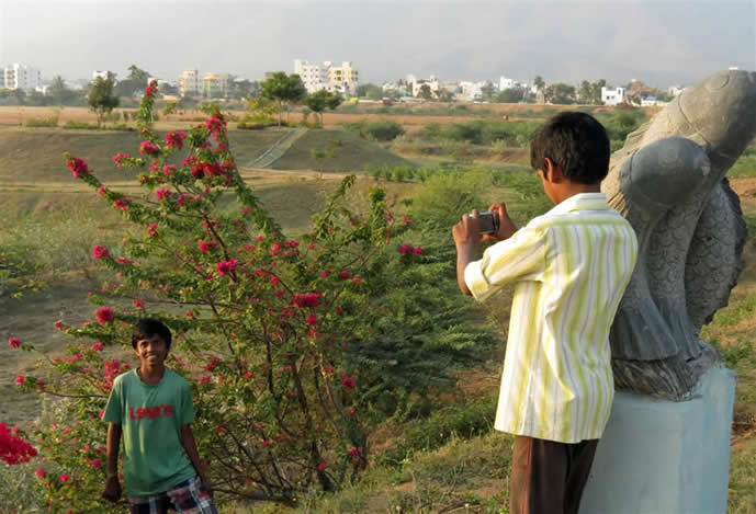 | Thumulagunta Park 2014 This is a large area, part of which is labelled a lake on the map. It is between the main part of Thumulagunta and the bypass to the South. At this time of year it is dry and used for cricket etc. It is surrounded on the North and East by a raised walk-way decorated with sculptures and beautiful Bourgainvilleas. At the Thumulagunta end is a huge 'statue' of Hanuman with depictions of his exploits and a place to view the park and to meditate at the top. This was a favourite place for the gang to suggest for us to go and so these pictures are taken from a number of visits. The park is a great place to go in the evening with its setting sun and cool(ish) breeze. Return to main Thumulagunta page Return to India pictures 2014 Other India pics |