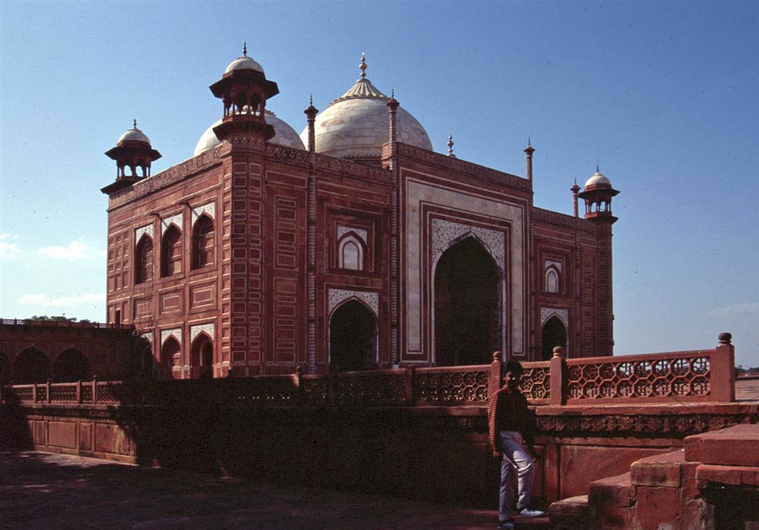 The International Union of Biochemistry used to hold triennual International Congresses, usually in capital cities of developed countries, attracting at least 4,000 biochemists to each. Under the guidance of President Professor Sir Hans Kornberg it was decided to hold the 1994 Congress in a less fully developed country and New Delhi, India was chosen. As we waited in London for our flight he told me that he was slightly worried about the decision; I told him that from my experience of India it was unlikely that everything would run completely smoothly but that it would be a wonderful experience for everyone. I was proved right. As we came out of the airport into the usual wonderful muddle of vast numbers of welcoming Indians Hans Kornberg was met by the Congress organisers to be whisked away in a suitable limousine. As I saw him off he indicated to me that I also had a welcoming committee, pointing to two shyly waving boys in the crowd. These were Suresh Kumar and Surya Prakash seen in the picture [right]. I had met Suresh on the cricket ground in Tirupati in 1991 and got to know his family [father - Venkateswara Rao] who lived on Nethaji Road. Two years later Suresh went to join the Indian Air Force in Bangalore and I became good friends with his younger brother Surya. He promised that he would meet me in Delhi the following September. To do so the brothers travelled by 3rd class train the 2000 km, 3 day journey to meet me. Suresh went immediately to his unit while Surya stayed with me as my official 'personal assistant' [PA as listed by the kind organisers of the Congress] in the Ashoka hotel where the Congress was held. Of course we went to Agra to see the fort and Taj Mahal. My PA explained that to hire a car with driver would be cheaper than going on the organised tour so we did that. The pictures were on slide film [Praktika camera with extra 135mm lens] and scanned to computer using Plustek scanner with Vuescan followed by Photoshop to remove colour cast and scratches. |