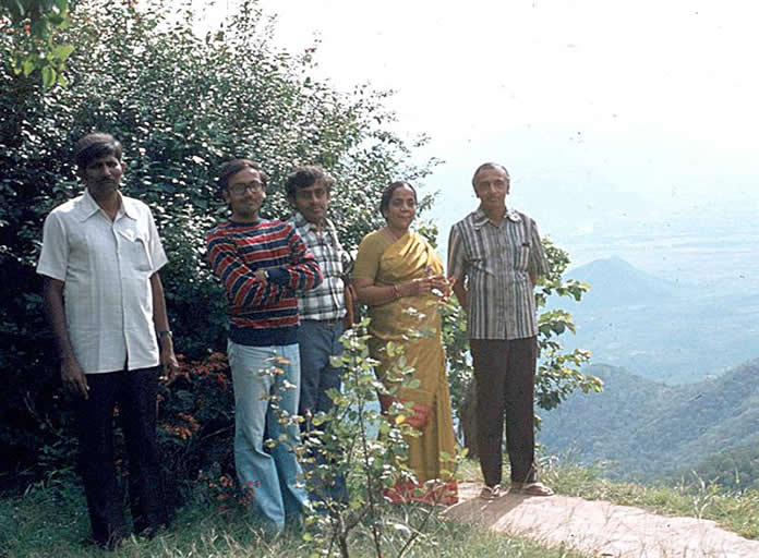 | Botany staff: ??, Sreeramulu, Naidu and Sreenivasulu. In the middle is Chowdappa [Student] and Naidu's son | |