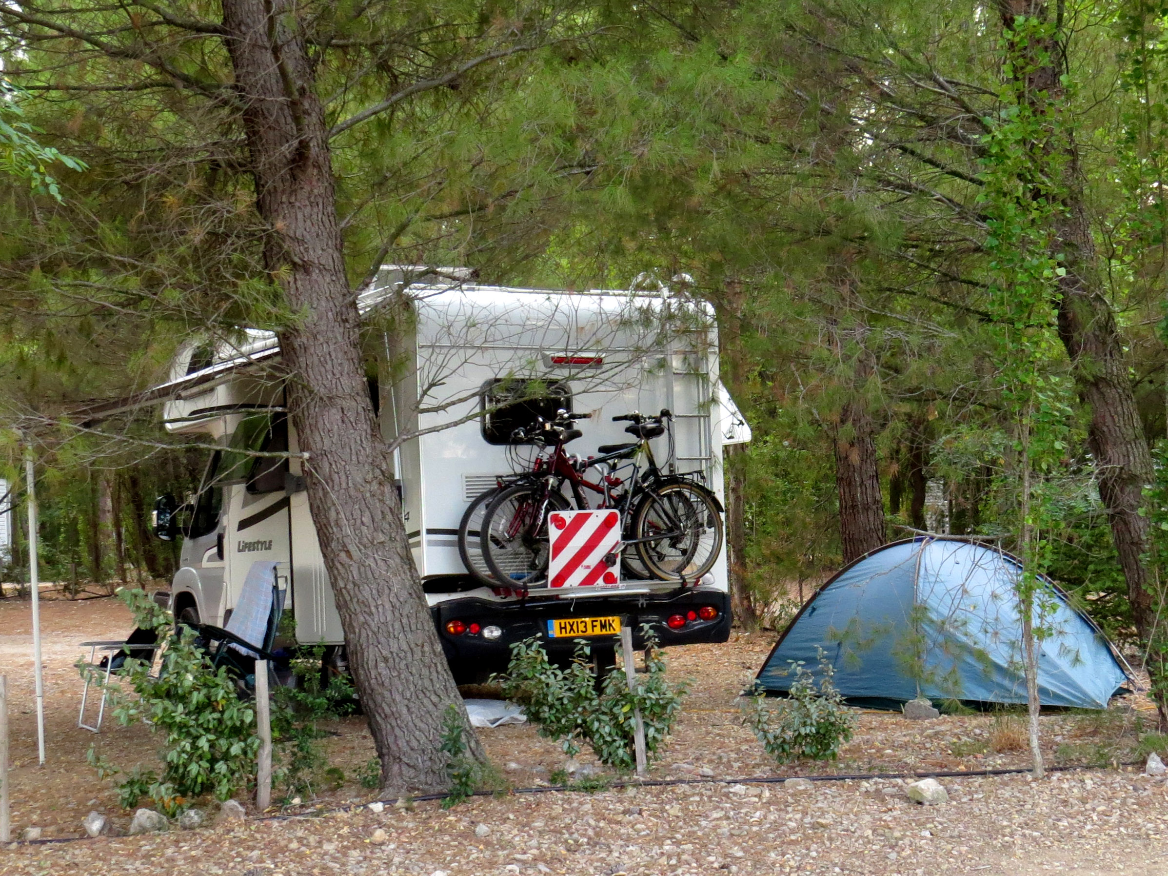 Estagel, Peyrestortes, airport (dropped Hugh), Estagel, Tuchan, Durban-Corbieres, Ferrals-les-Corbieres, Lezignan-Corbieres, past Minerve, St-Pons-de-Thomieres* [109 miles] 2nd July, Saturday, 1 night. St-Pons-de-Thomieres*. An excellent site under cherry trees by a river (with beach for swimming). Small pool. Rural amongst wooded hills. Next to a Voie Vert – a disused rail line suitable for walking and cycling. Short cycle ride into interesting town.
