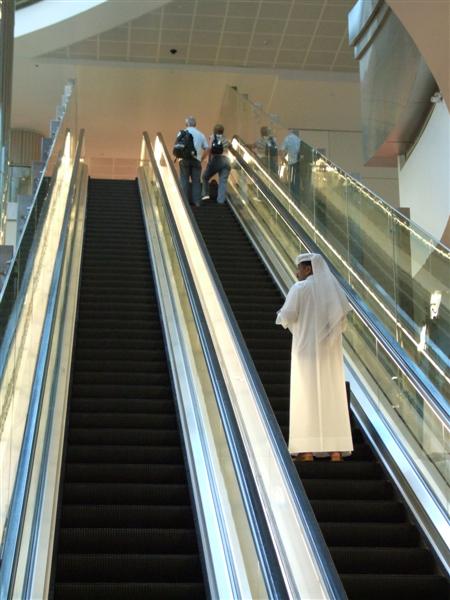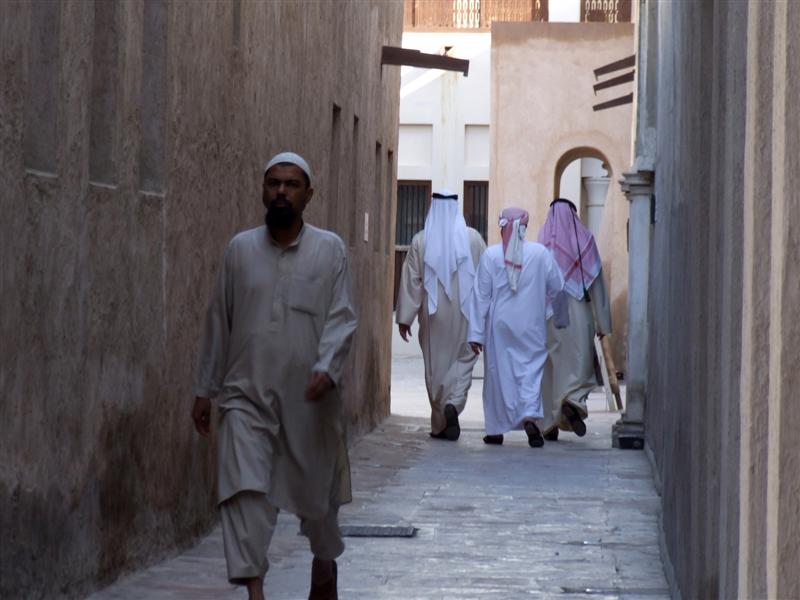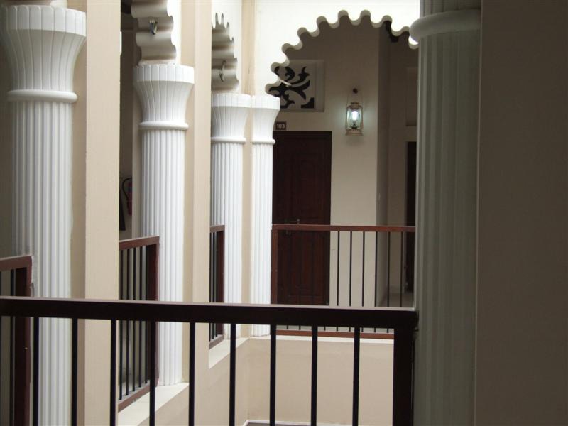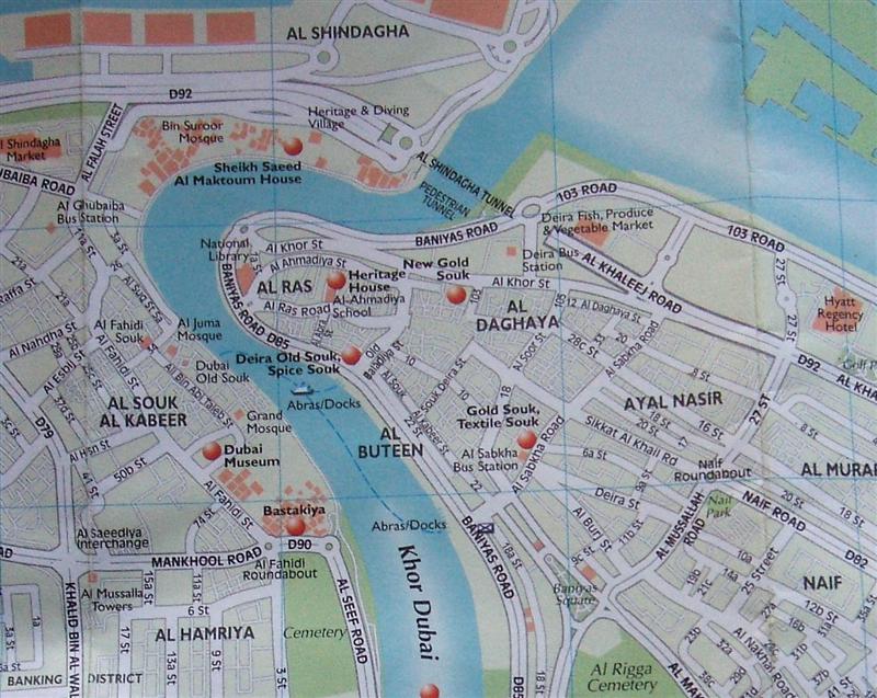| These are from a visit [2nd -6th April 2009]to my Indian engineer friend Madhu who is now working there. We stayed at an excellent traditional hotel - The Hijaz Heritage Motel - in the old Al Ras quarter in Deira. The hotel is part of a group including the traditional Heritage House and the Al-Ahmadiya School. Deira is separated from the other old part, Bur Dubai, by the Creek which we frequently crossed by the small boats, the Abras, for one Dhiram. |