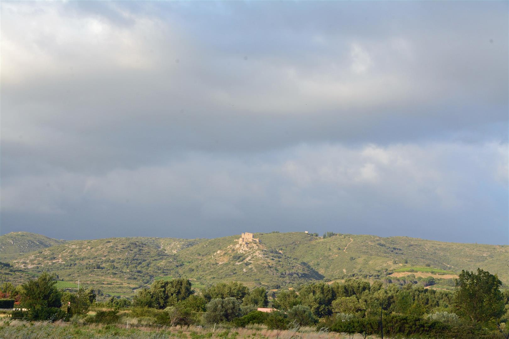 | Walking home from the village. Our pitch is on the left of the trees | Our local castle waiting for the storm. Press Control and + sign to ennlarge | |||