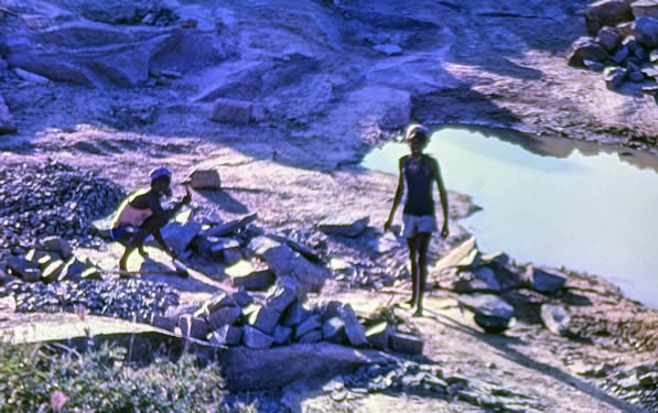 | This was a quarry. The friendly workmen once gave me a lift home high up on the back of their lorry clinging onto the rocks. | ||
