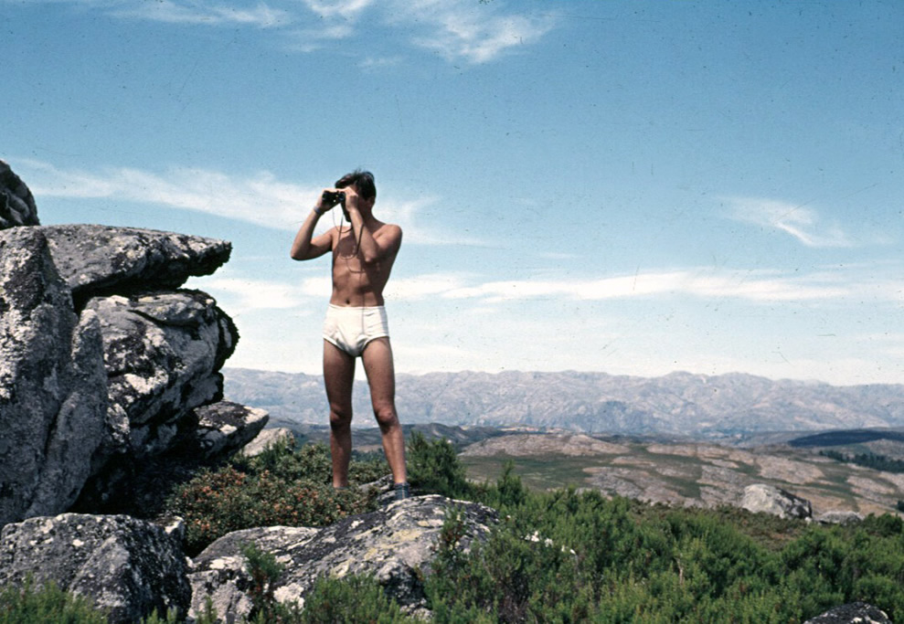 I recently met up with David after about 48 years. These are pictures taken from his long-lost slides, scanned and cleaned up with Photoshop. I had recently started my PhD in the University of Reading where I was friends with David who had spent much of his life with his parents in Portugal. He asked a favour: that I give him a lift to visit his mother. After I agreed he told me she was in Portugal, so I then agreed more enthusiastically. We went on my single cylinder 350cc BSA. I had bought this a few months earlier for £25 on the day i passed my driving test on my NSU 50cc Quickly. The bike went well but before we reached Portugal the spring in the gear return spring lever [right foot] broke and so had to be manipulated with an elastic cord and complicated footwork for the rest of the journey. Usual running speed was 55 - 65mph. |