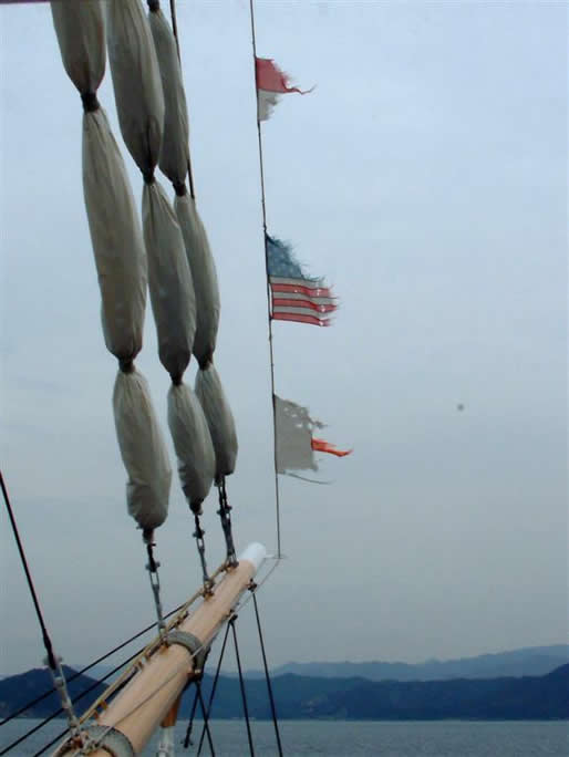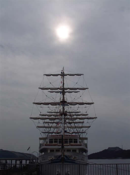 | Our ghostly boat took us to see the famous whirlpools in the harbour | ||