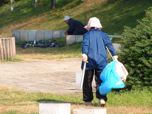 | My local temple with artists in foreground and Tokyo Tower behind | |