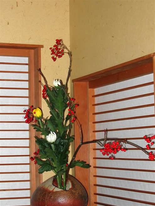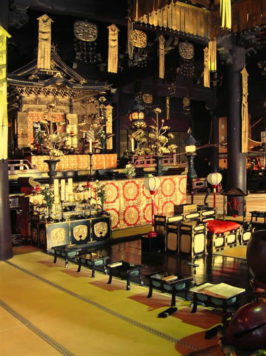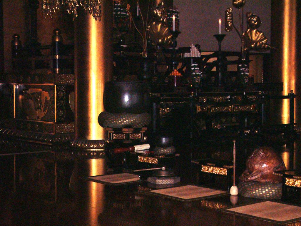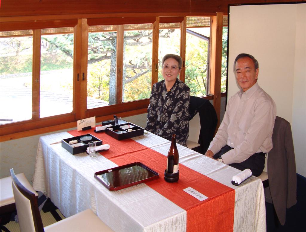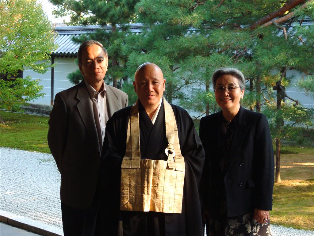 | Professor Kato with his wife [my hosts] with the cheif 'priest' of the temple | ||