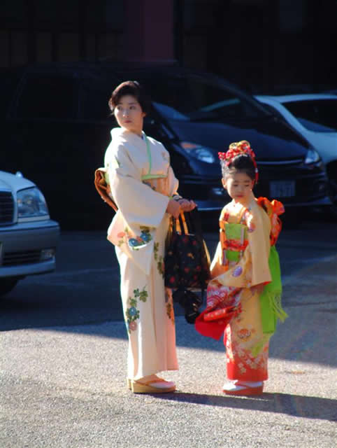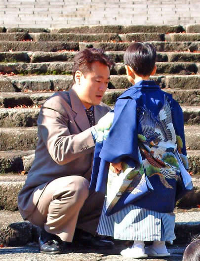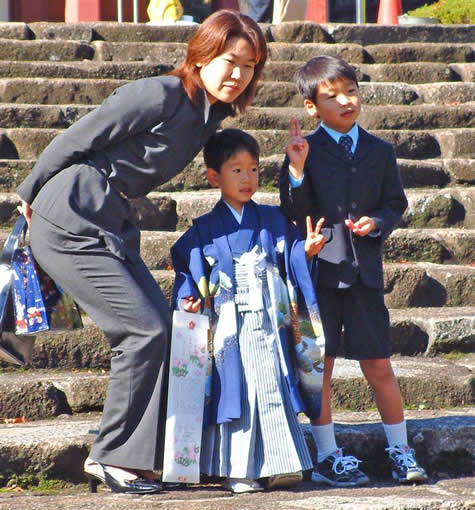 | A special day at the temple. A celebration for all children who reach the ages of 3, 5 or 7 during that year. The long bag contains candy. | |