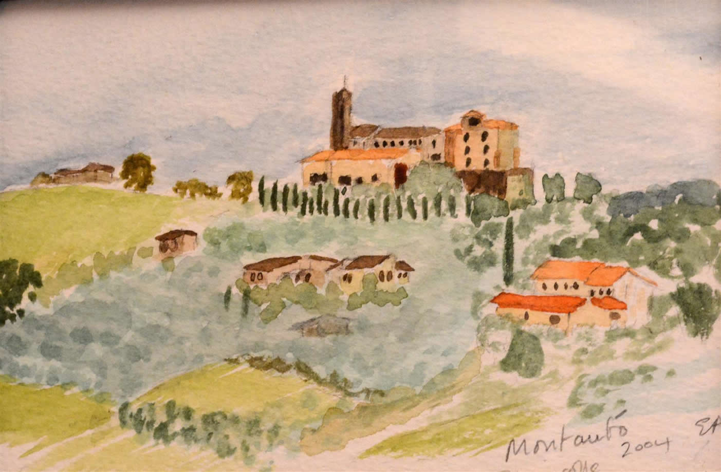 | Liz's watercolour of Montauto from Poggiacolle | ||