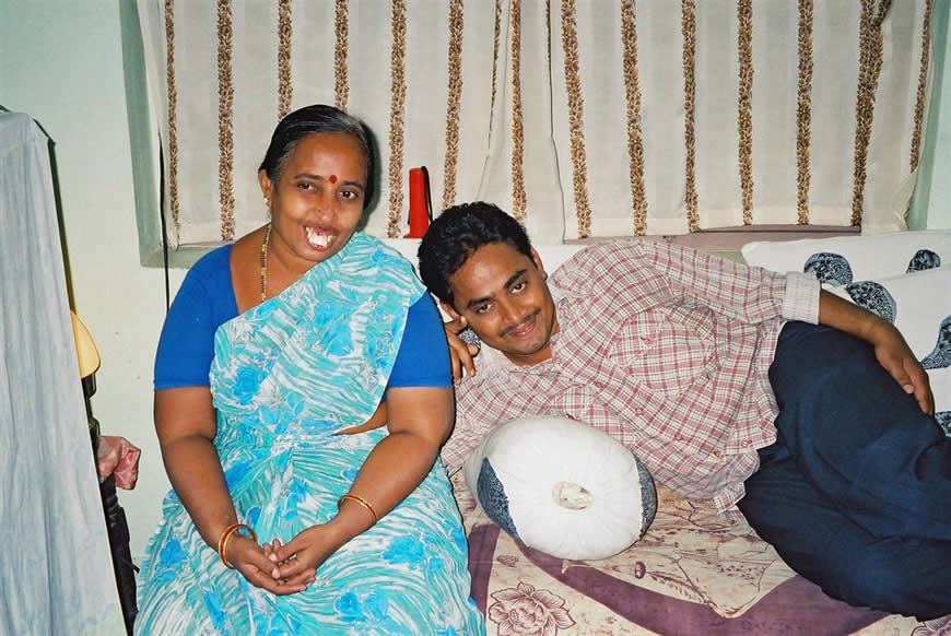 | Surya with mother in their home in VenkataReddy colony near DR Mahal. | |