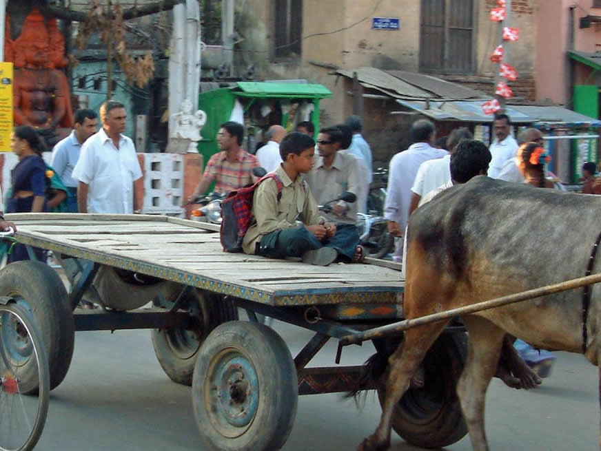 | On way to school? you can see orange Hanuman at the left of picture | |