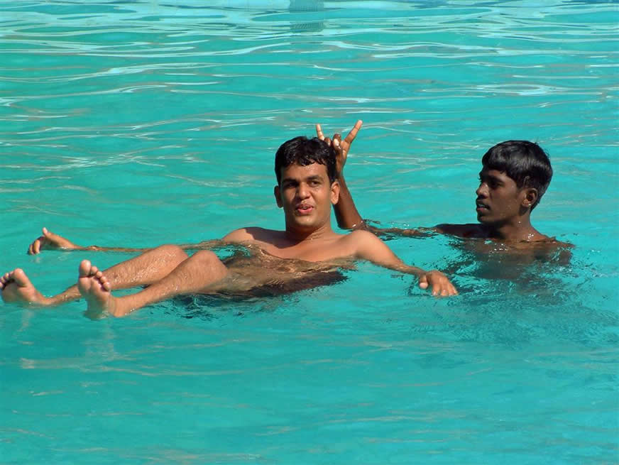 | Imran and Gopi in a hotel pool | |||