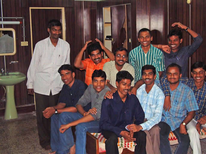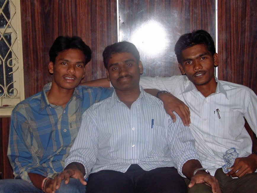 | Kotesh, Venkataramana and friend at guesthouse | |||
