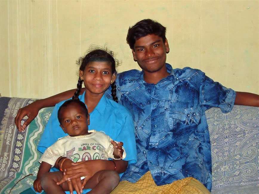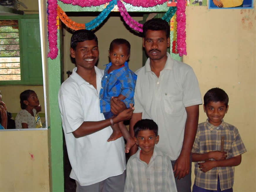 | Balaji (holding baby) with his brother. The boy in front is Mounish | |