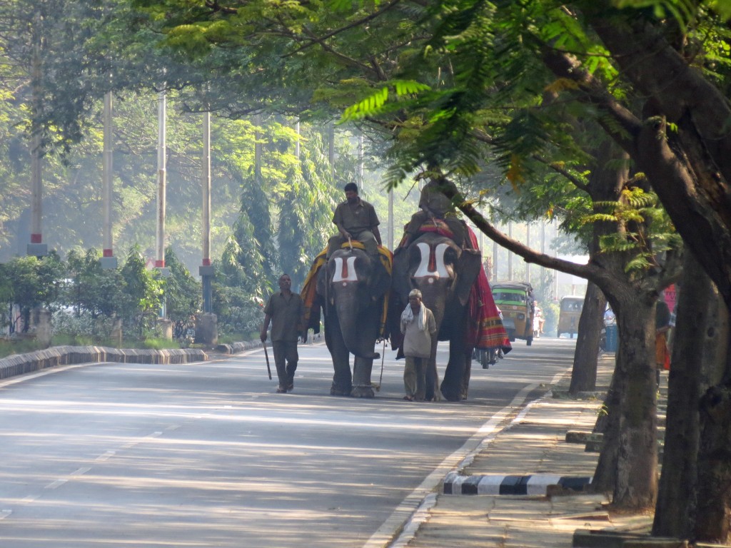 | The Temple elephants on their way home |