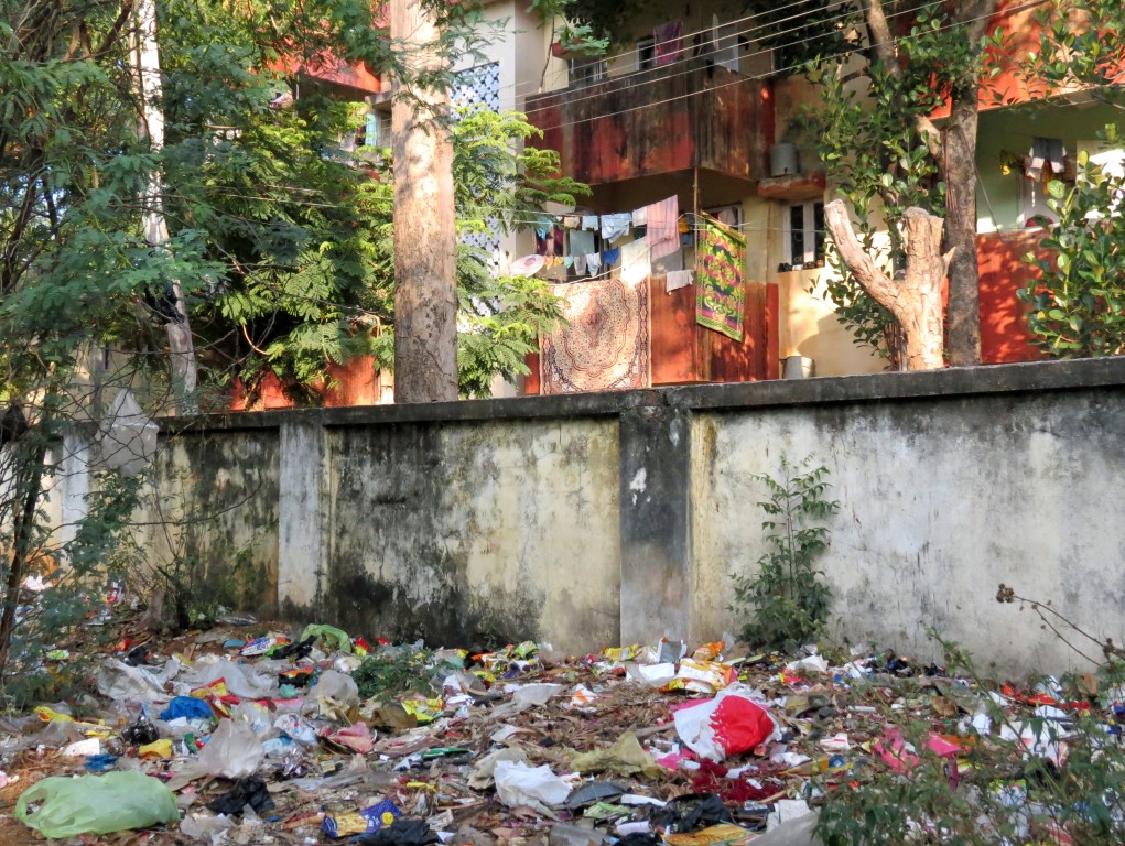 | My path out to the country passes this wall of the NCC Nagar compound where they throw all rubbish | |||
