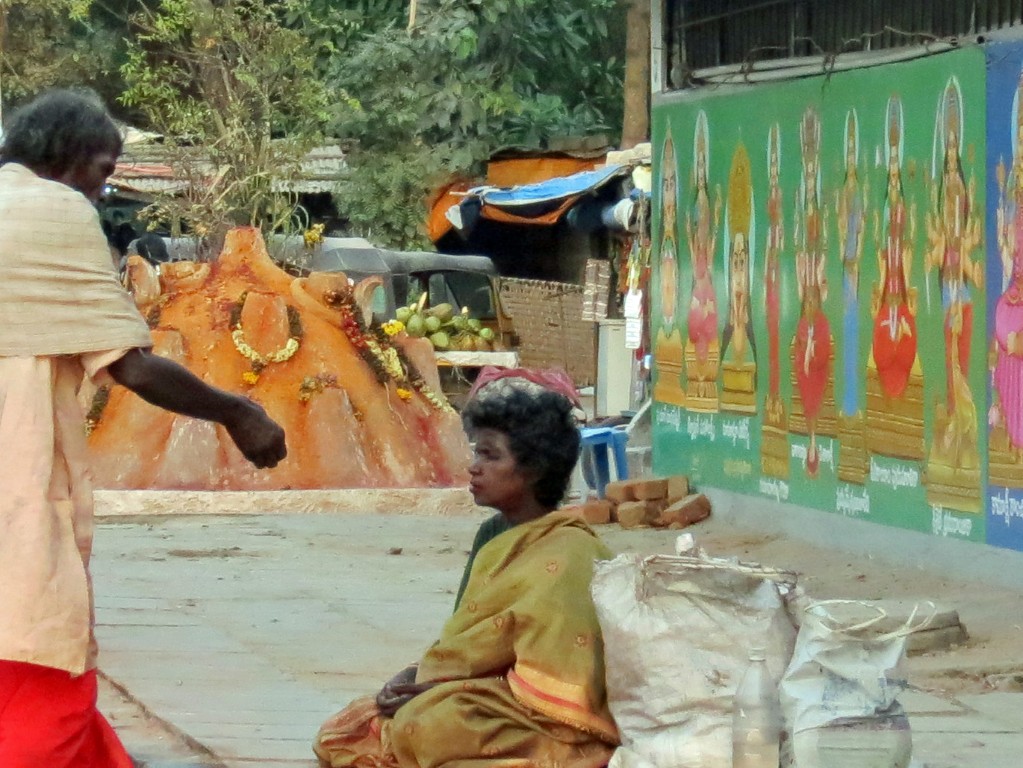 | The backside [as they say] of the temple. He seems to be offering his wife a potato |