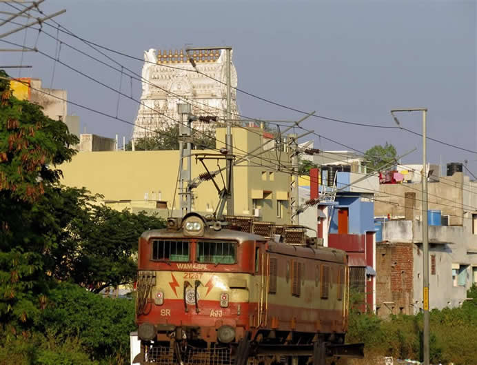 | Approaching Tirupati main station. Sri Govindaswamy temple in background | |||