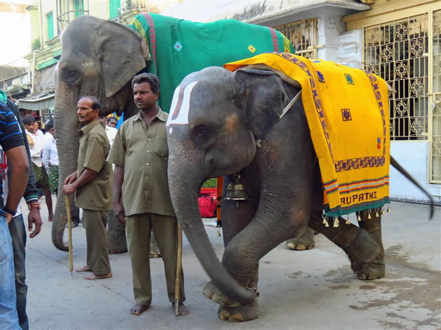 | The elephants near the inner courtyard; the baby elephant is in training | |||