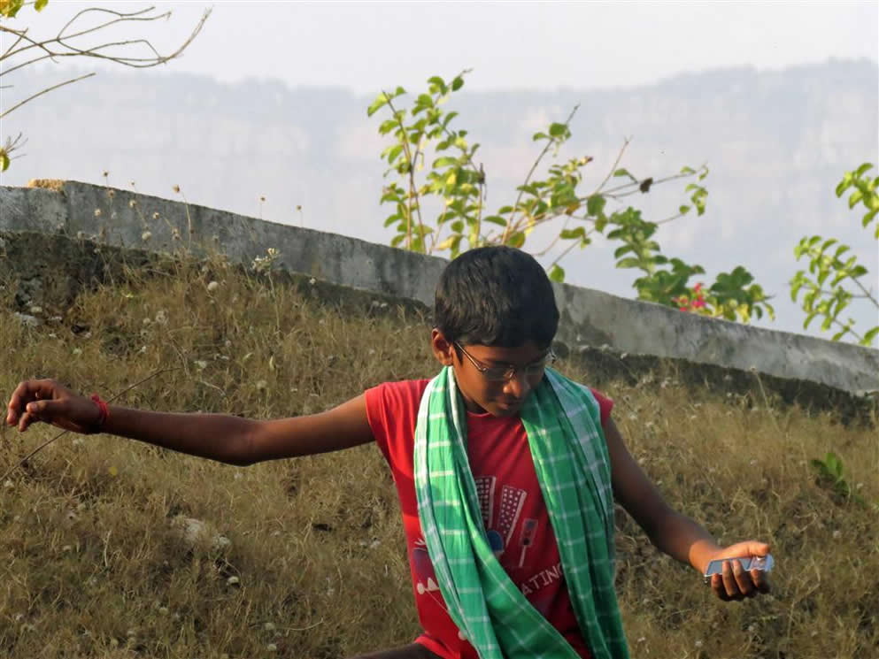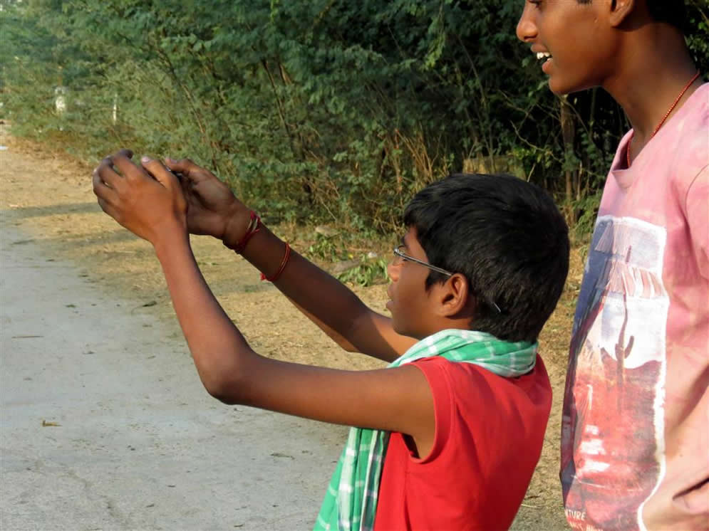 | Bobby with small camera, with Manoj | |