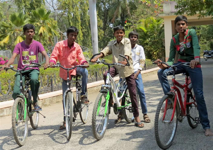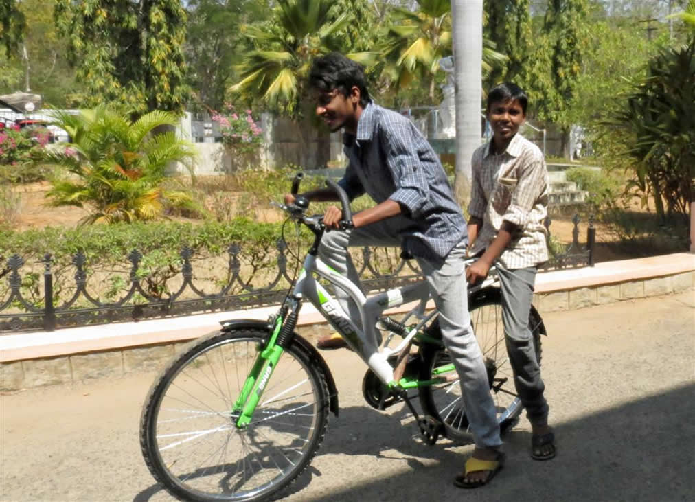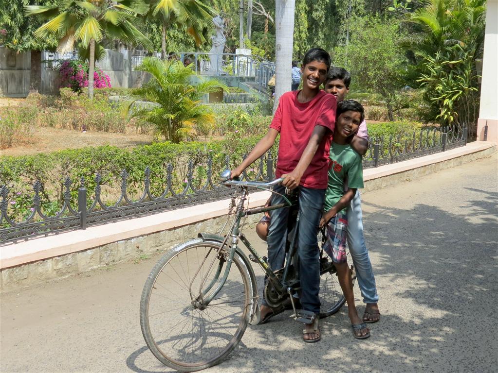 | Manoj, Balu and Said on borrowed old-stype bike | |||