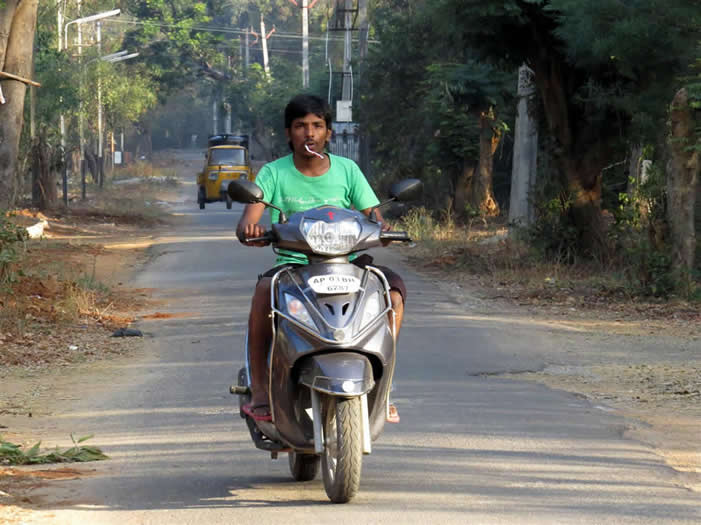 | The end of the road from guest house; Balaji colony with my always laughing friend Mahaesh | |||