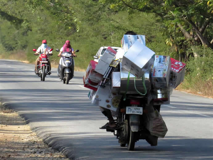 The statue of Ambedkar, the writier of the Indian Constitution, at the entrance to Sri Venkateswara University. Motorbikes have become unavoidable in most pictures |