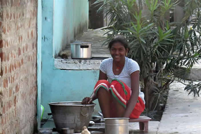 Washing up. One of the triumphs of modern India - Stainless steel.