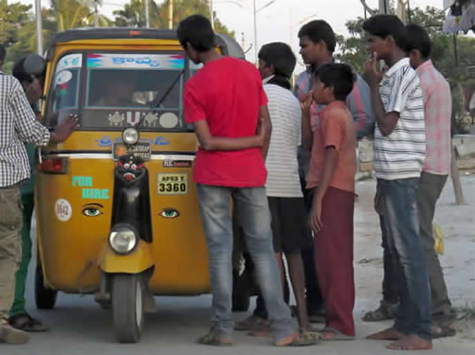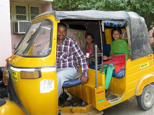 | Negotiating price of my auto home; Manoj, Balu and Said Safely back at guesthouse with my driver and his daughters who entertained me on way home |