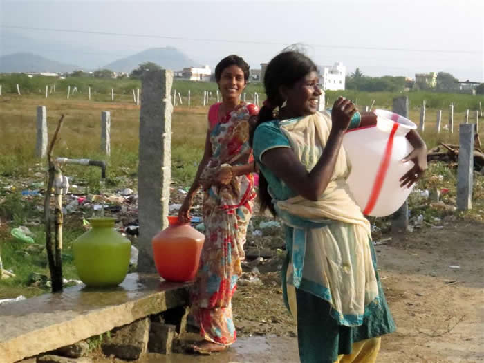 Communal water supply on East side of village. I wish there was a better way of rubbish disposal.