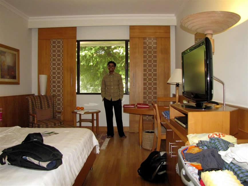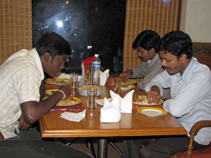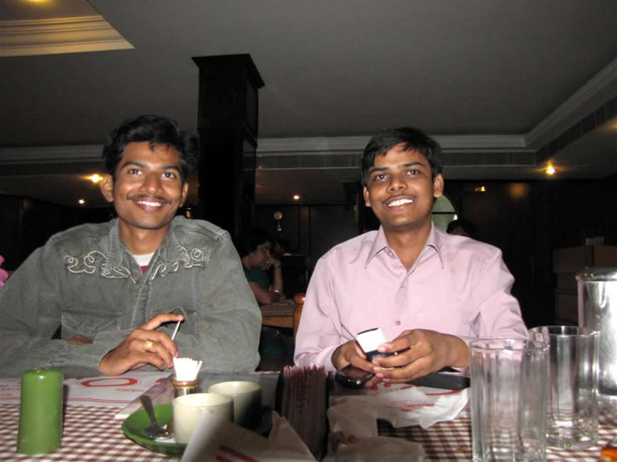 | In Fortune Kences hotel. Gopi [left] with Subbu [front] and Sarath |