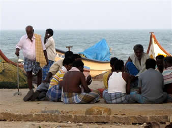 | Mahabalipuram, now called officially Mamallapuram, is 40 km south of Chennai [old Madras] on the Bay of Bengal. It is a fishing village and the shore temples are a world heritage site. We stay at the Golden Sun Beach Resort |