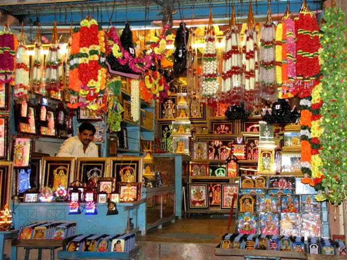 | Religious bling in Temple road [small road of shops leading to Sri Ramagovindaswamy temple] |