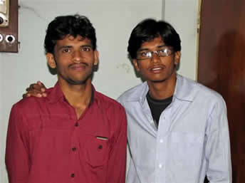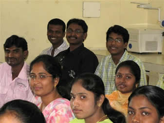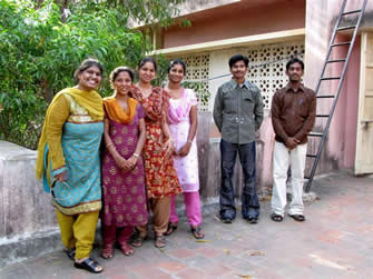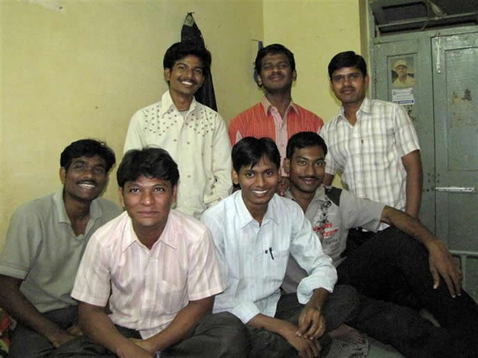 | Previous year Virology/Microbiology students, in hostel [Mallikarjuna in front]; others are Bala Ankaiah, D Reddy, Karunakar, Srath, Adinarayana and Muneel. |