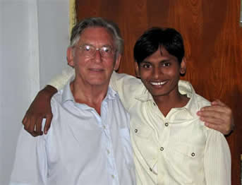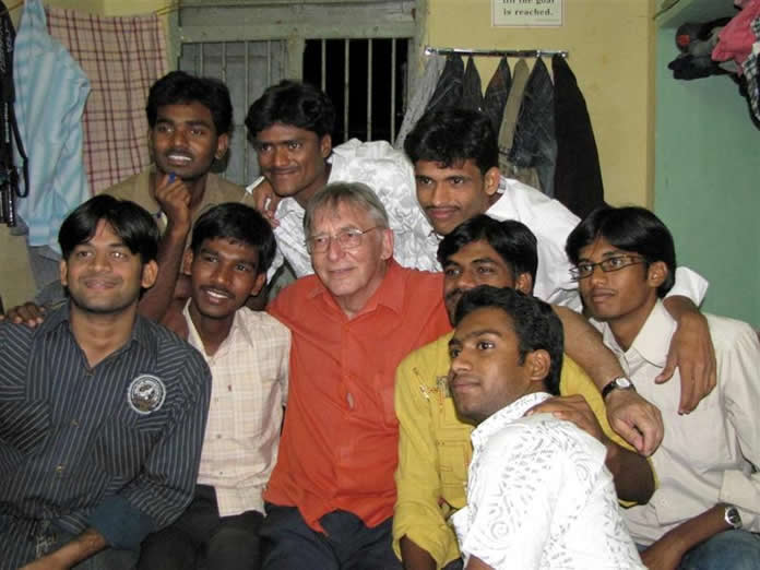 | My Farewell, wearing the new shirt presented to me 20 minutes before ["we think you need a new clean shirt sir"]. Guests are Head of Sri Vijaynikaten college, Chowdappa and Sai Gopal |