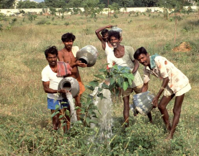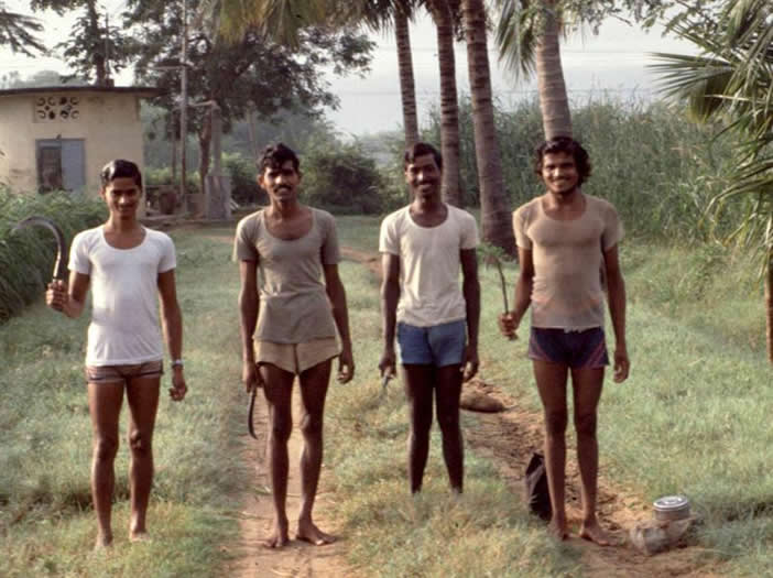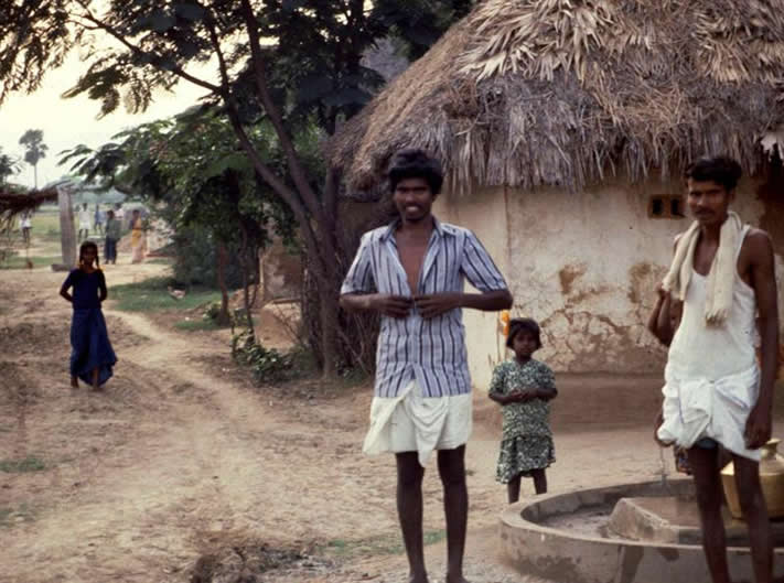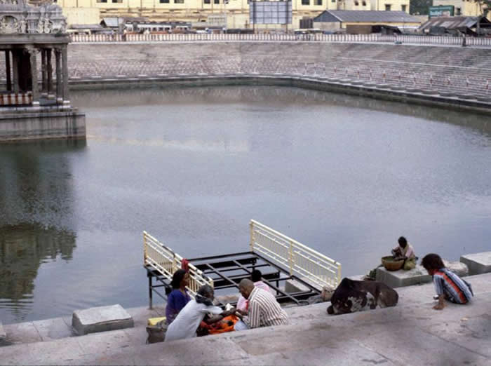 | The temple tank with Prof. Naidu [center] and Sai Gopal on the right [now Professor and Head of Department. | |