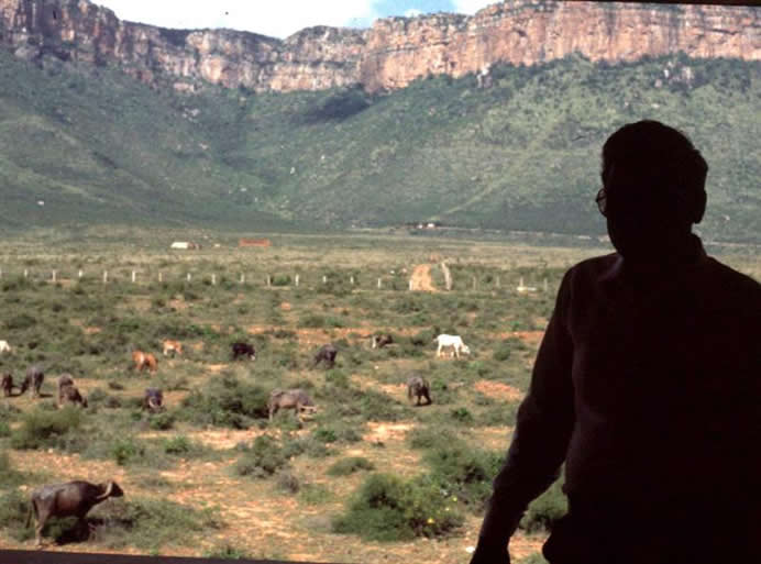 | View from Biochemistry Dept. The Virology Dept now blocks the view. Prof. Venkaiah is on right. | |