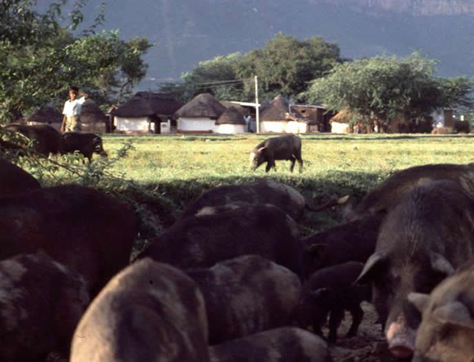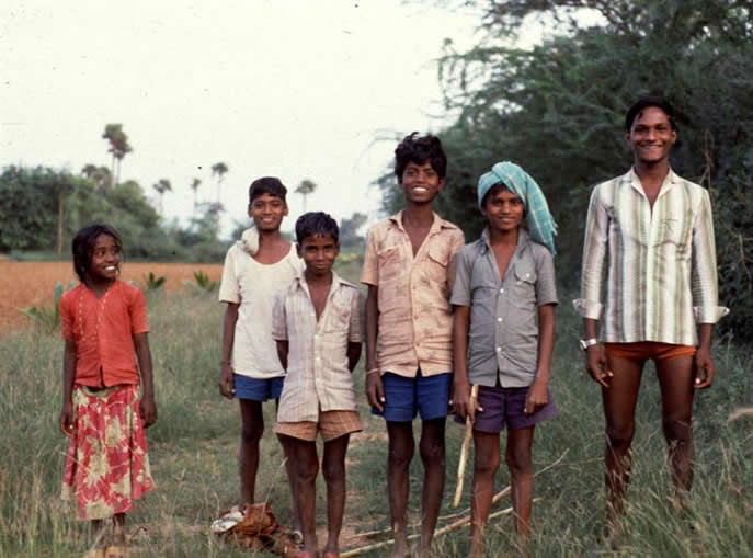 | Their smiles came only after I put up my hands in surrender; on edge of dairy farm |