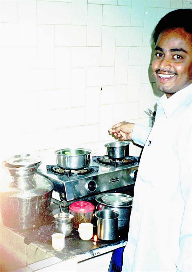 | Surya's mum with his sister Swarna | Surya the cook | |