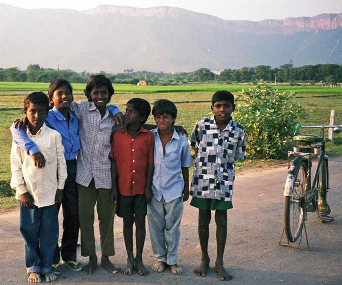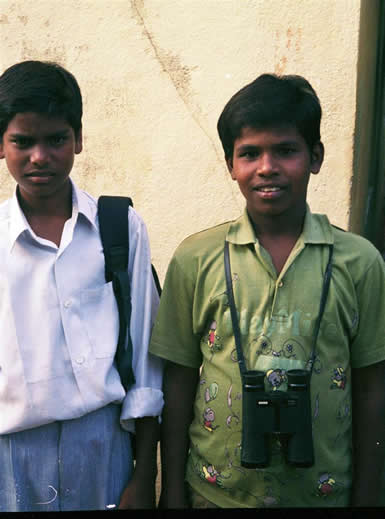 | Shy girls | Friends - they had taken control of my bag and rucksack. On left is Venkataramana who I got to know well | |
